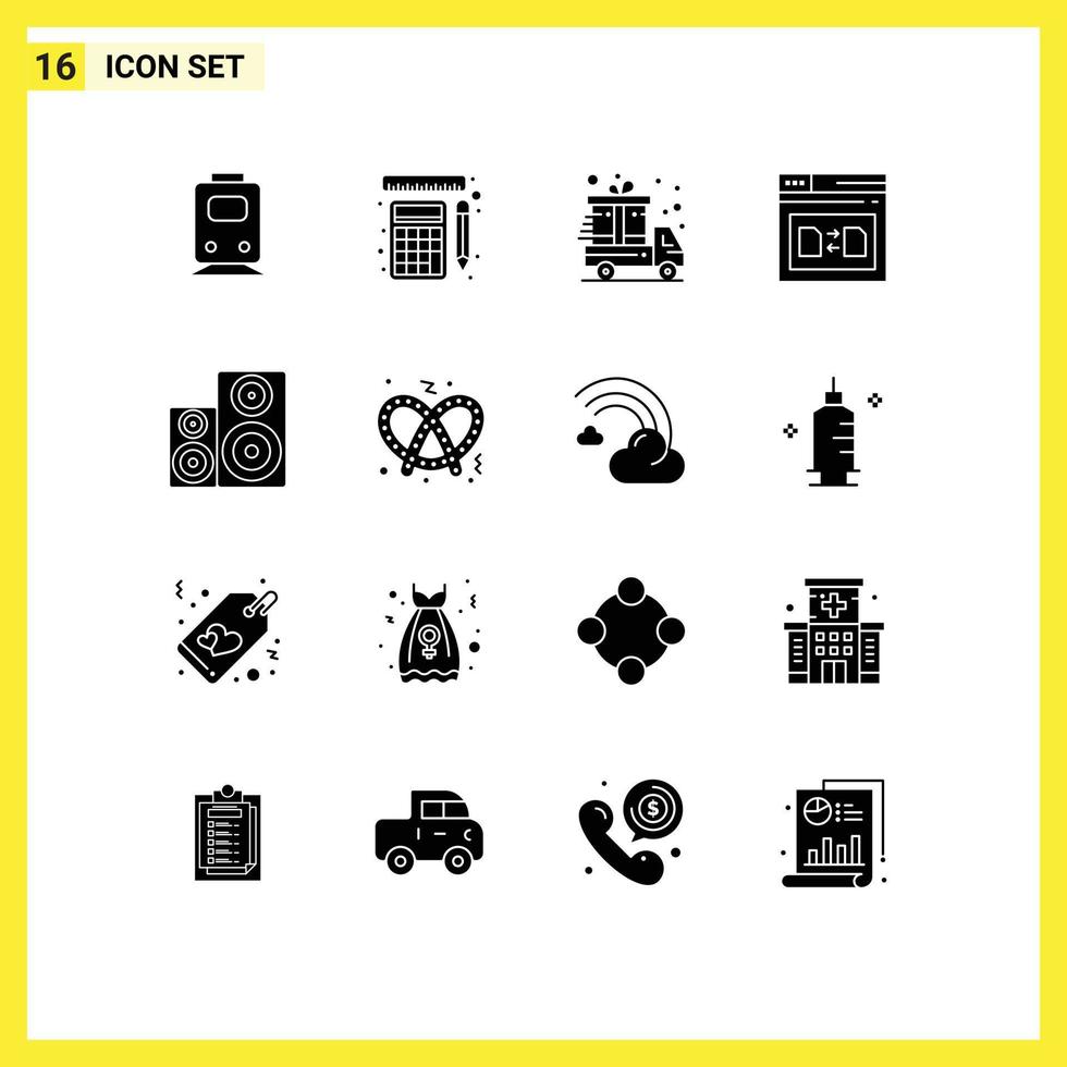 Universal Icon Symbols Group of 16 Modern Solid Glyphs of audio file calculation web page Editable Vector Design Elements Free Vector