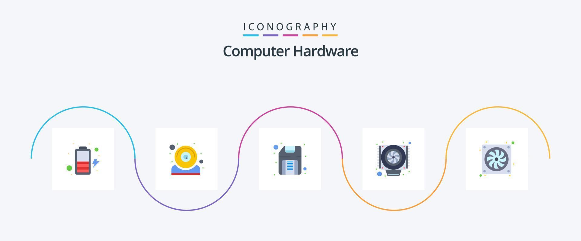 Computer Hardware Flat 5 Icon Pack Including hardware. computer. disk. casing. cooler vector