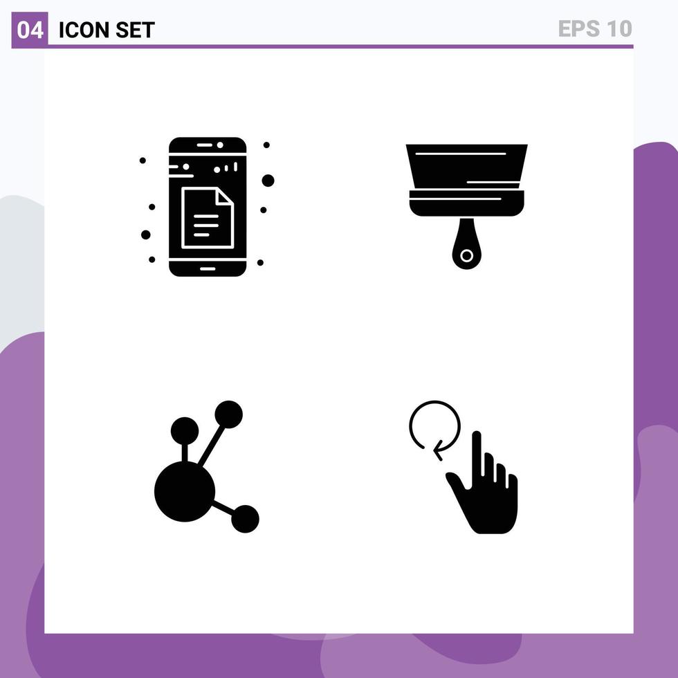 Pack of 4 Modern Solid Glyphs Signs and Symbols for Web Print Media such as data coin app paint brush crypto currency Editable Vector Design Elements