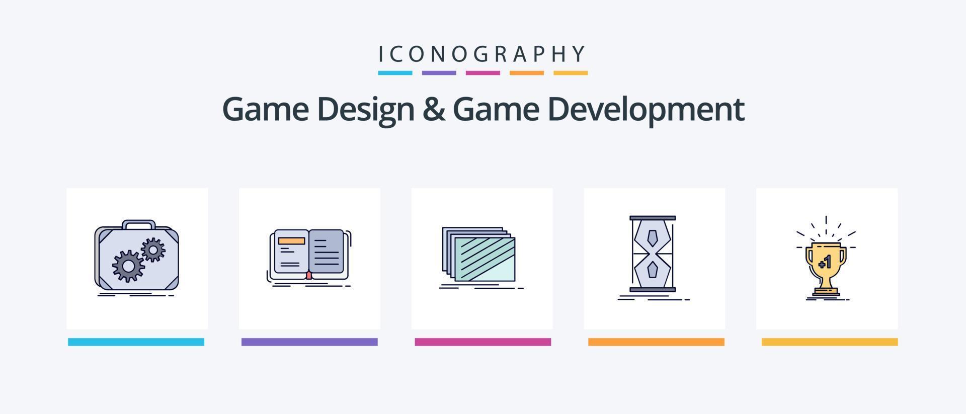 Game Design And Game Development Line Filled 5 Icon Pack Including game. check. texture. publishing. game. Creative Icons Design vector