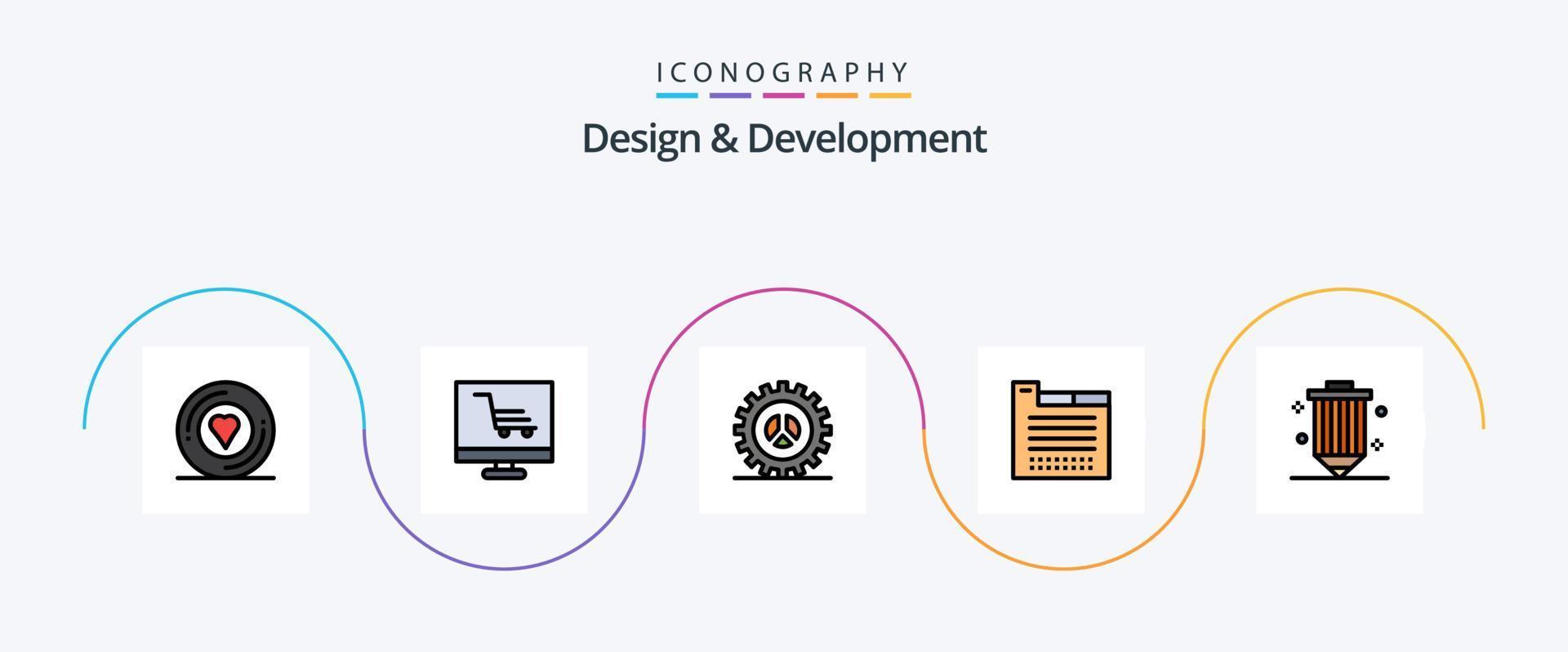 Design and Development Line Filled Flat 5 Icon Pack Including coding. theme. options. tabs. web development vector