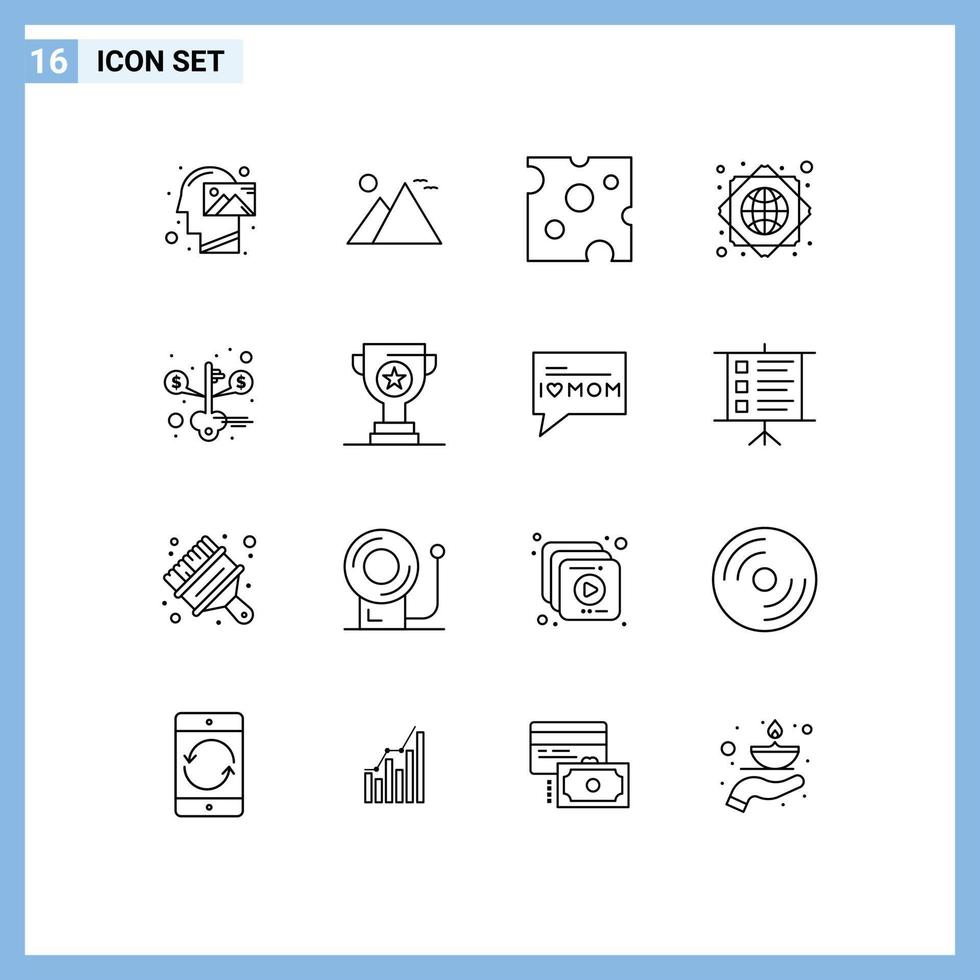 User Interface Pack of 16 Basic Outlines of key global network pyramid global infrastructure food Editable Vector Design Elements Free Vector