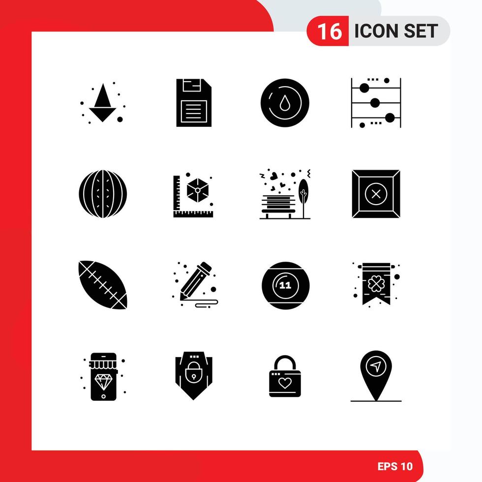 Set of 16 Modern UI Icons Symbols Signs for drink counting energy calculator abacus Editable Vector Design Elements