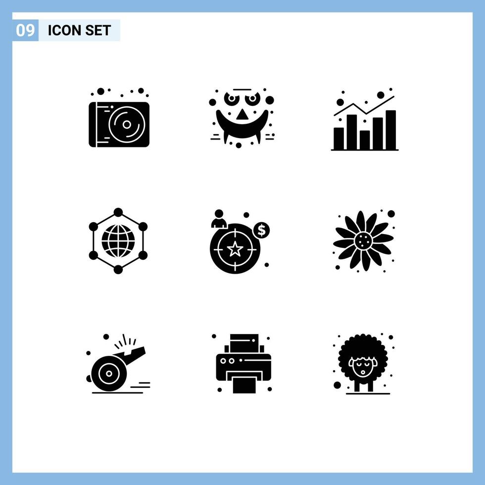 Pictogram Set of 9 Simple Solid Glyphs of customer internet analytics globe statistics Editable Vector Design Elements