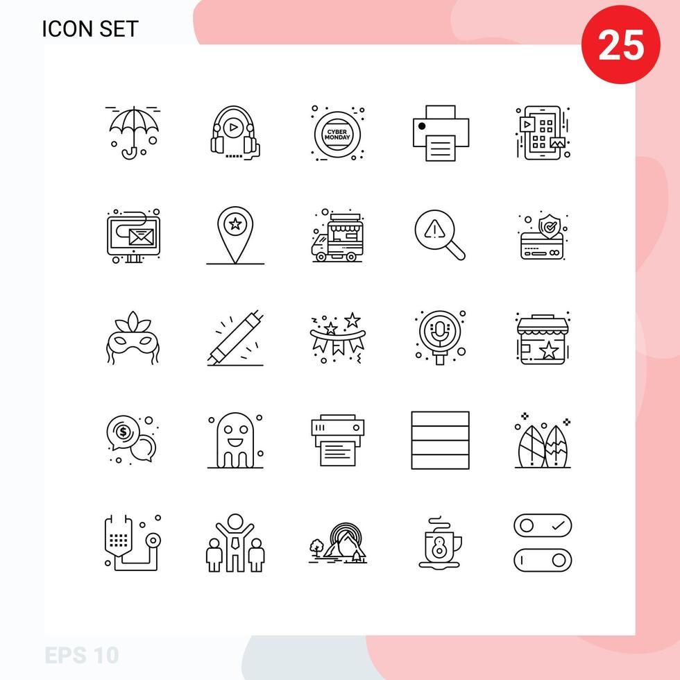 25 Universal Lines Set for Web and Mobile Applications play menu holding grid print Editable Vector Design Elements