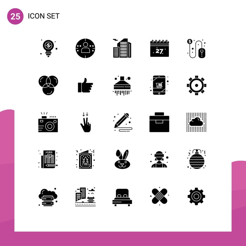 25 Universal Solid Glyphs Set for Web and Mobile Applications mouse dollar estate click calendar Editable Vector Design Elements