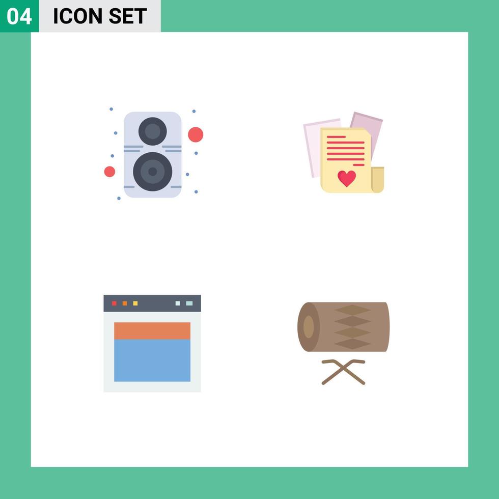 Group of 4 Flat Icons Signs and Symbols for computer layout speaker heart web Editable Vector Design Elements