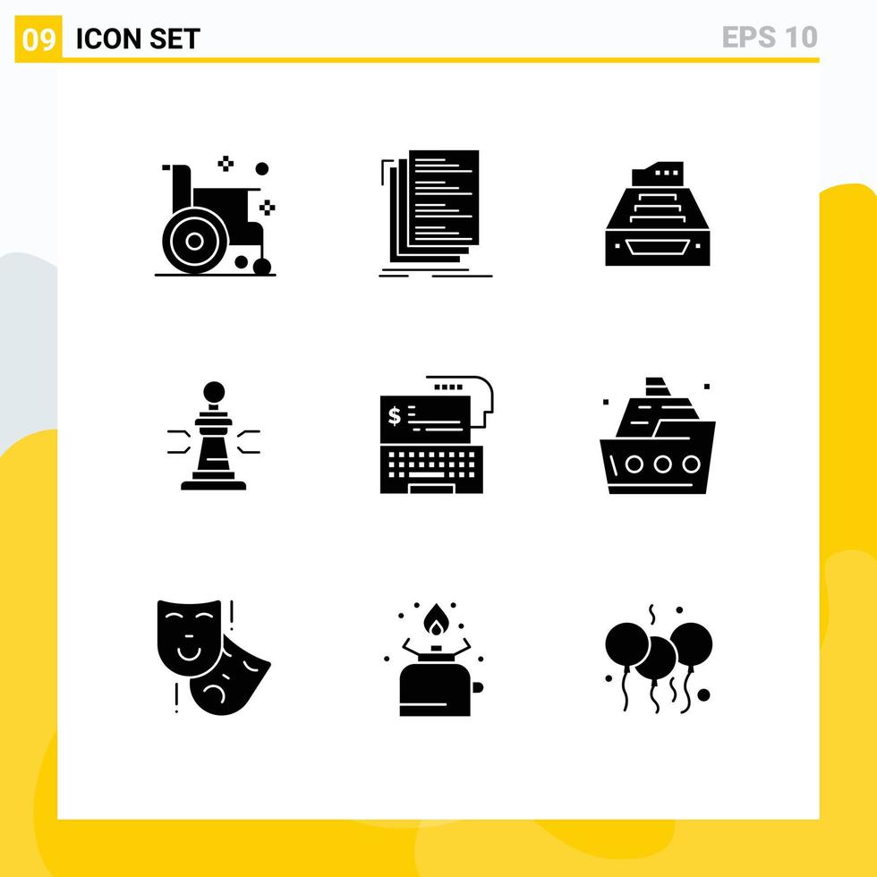 9 User Interface Solid Glyph Pack of modern Signs and Symbols of chess inbox files database accounts Editable Vector Design Elements