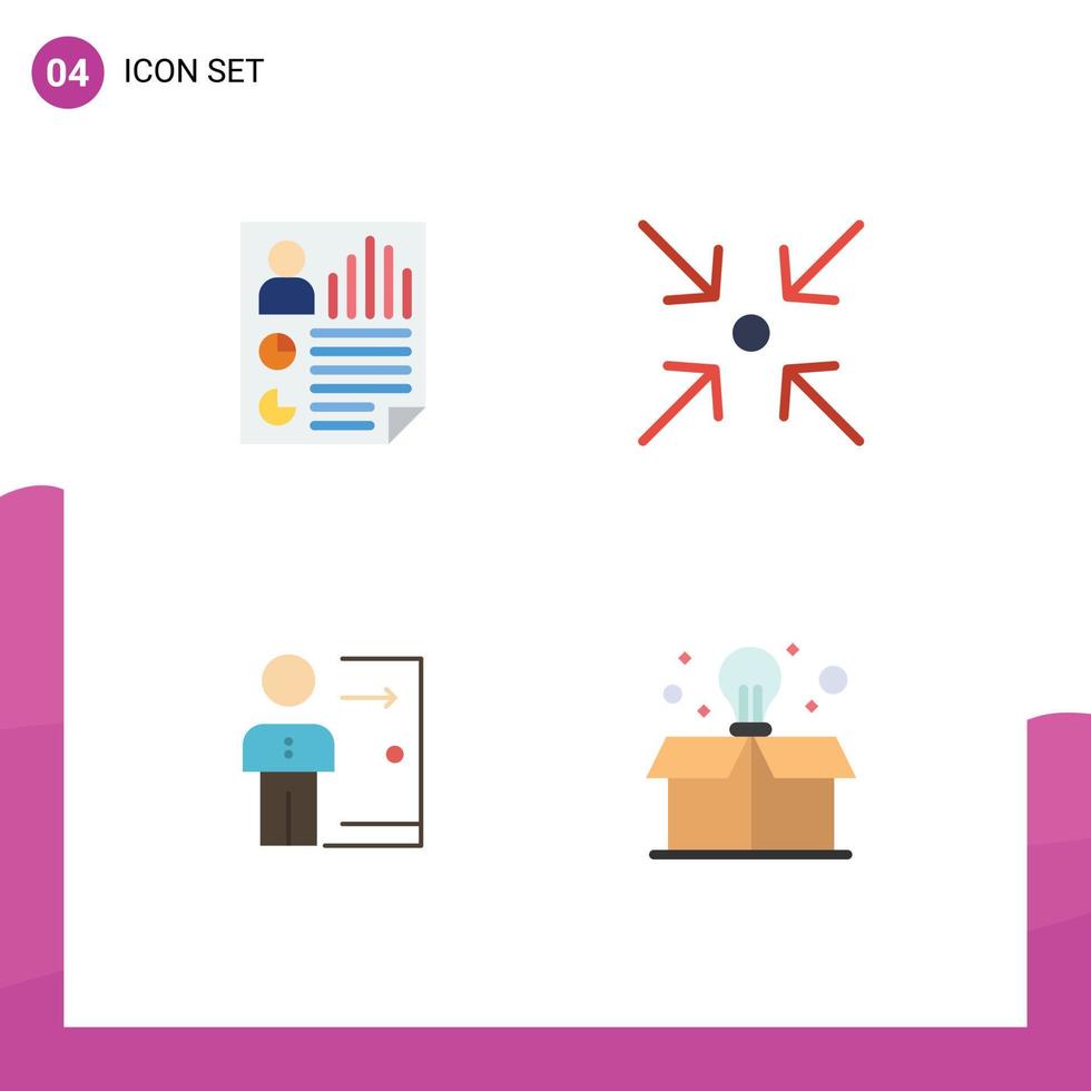 Pack of 4 Modern Flat Icons Signs and Symbols for Web Print Media such as data employee report collapse job Editable Vector Design Elements