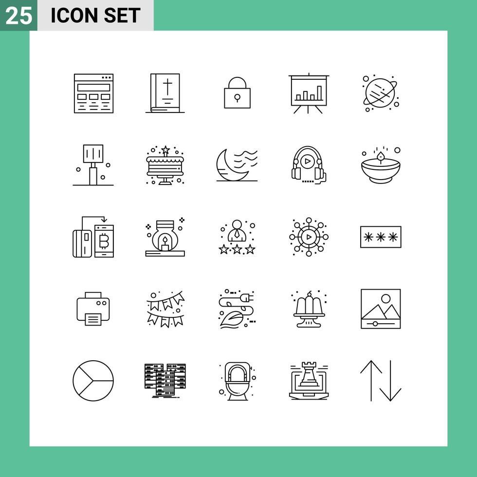 Editable Vector Line Pack of 25 Simple Lines of space planet thanksgiving presentation analytics Editable Vector Design Elements Free Vector