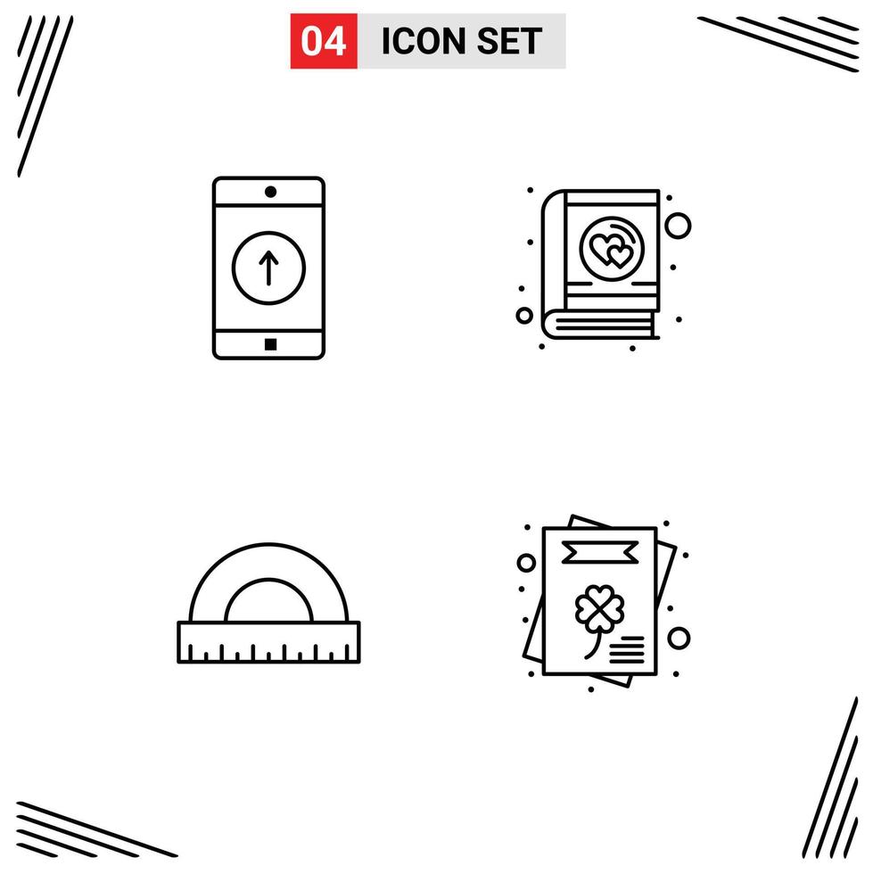Mobile Interface Line Set of 4 Pictograms of application angle smartphone love measure Editable Vector Design Elements