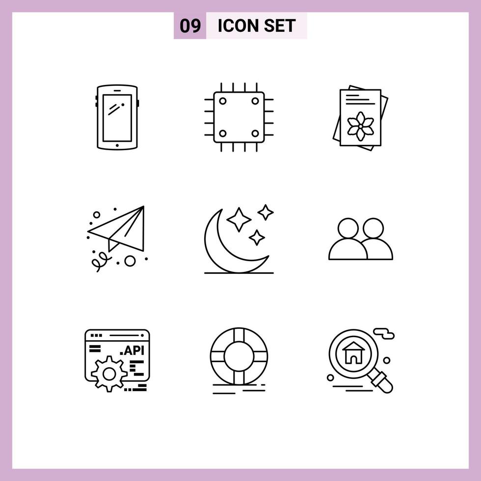 Modern Set of 9 Outlines and symbols such as crescent message gadget email flower Editable Vector Design Elements Free Vector
