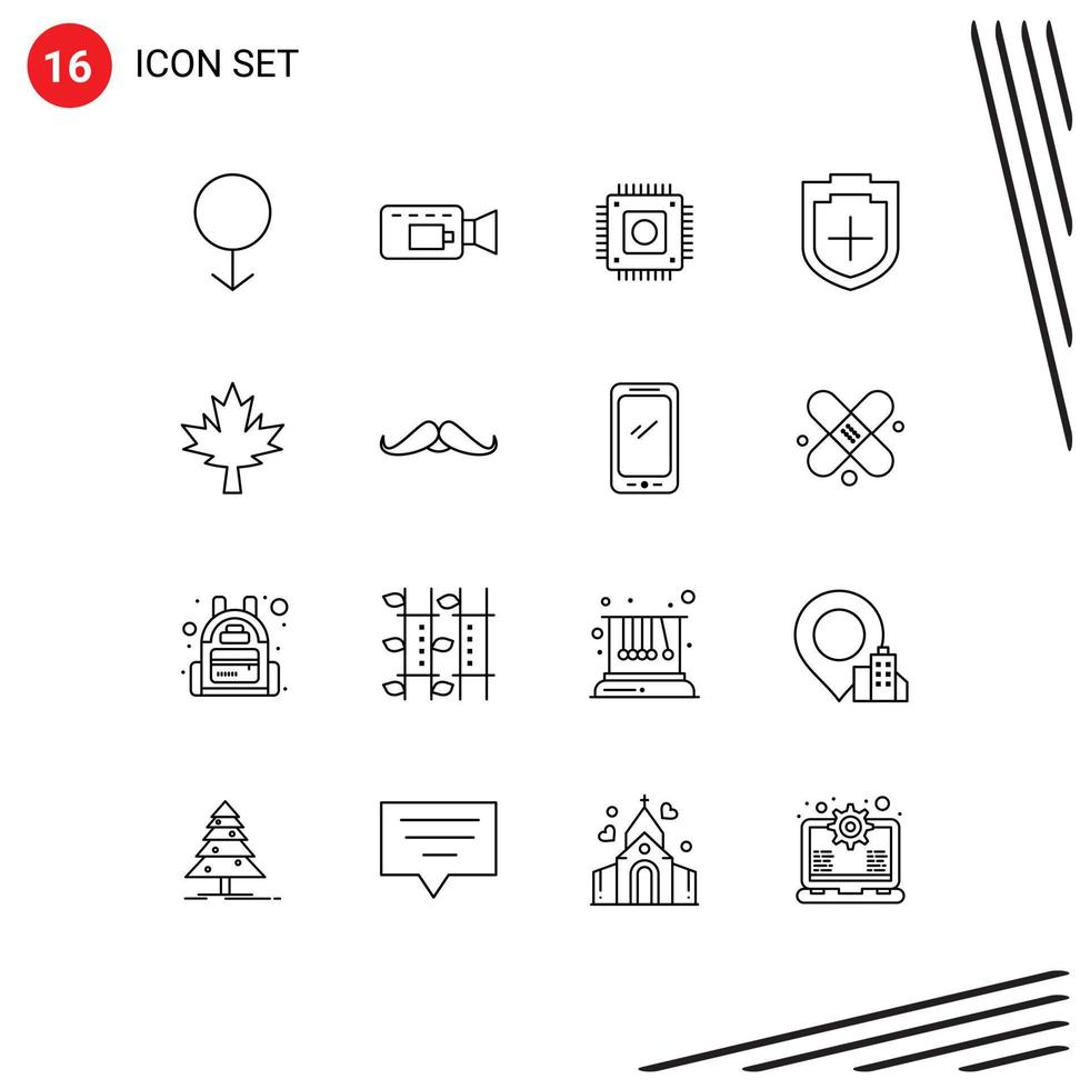 Universal Icon Symbols Group of 16 Modern Outlines of moustache leaf microchip canada security Editable Vector Design Elements