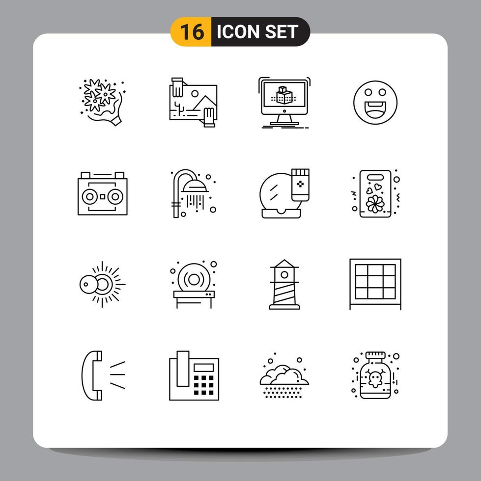 16 User Interface Outline Pack of modern Signs and Symbols of audio recording happy image emojis modelling Editable Vector Design Elements