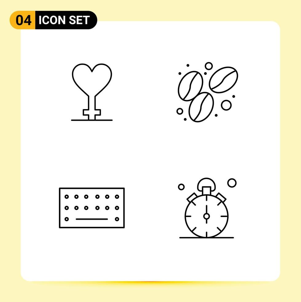 Mobile Interface Line Set of 4 Pictograms of heart watch bean hardware quarter Editable Vector Design Elements