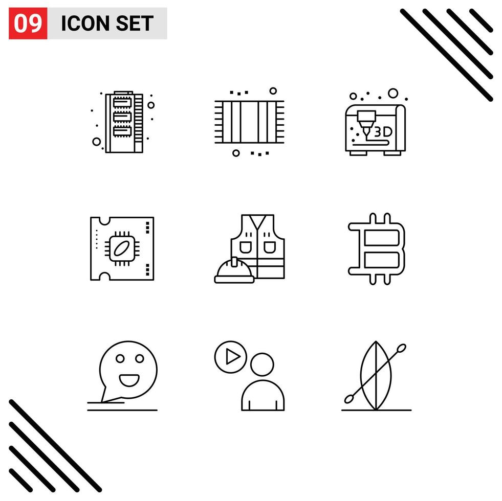 Pack of 9 Modern Outlines Signs and Symbols for Web Print Media such as labor labour jacket shower processor chip microchip Editable Vector Design Elements Free Vector