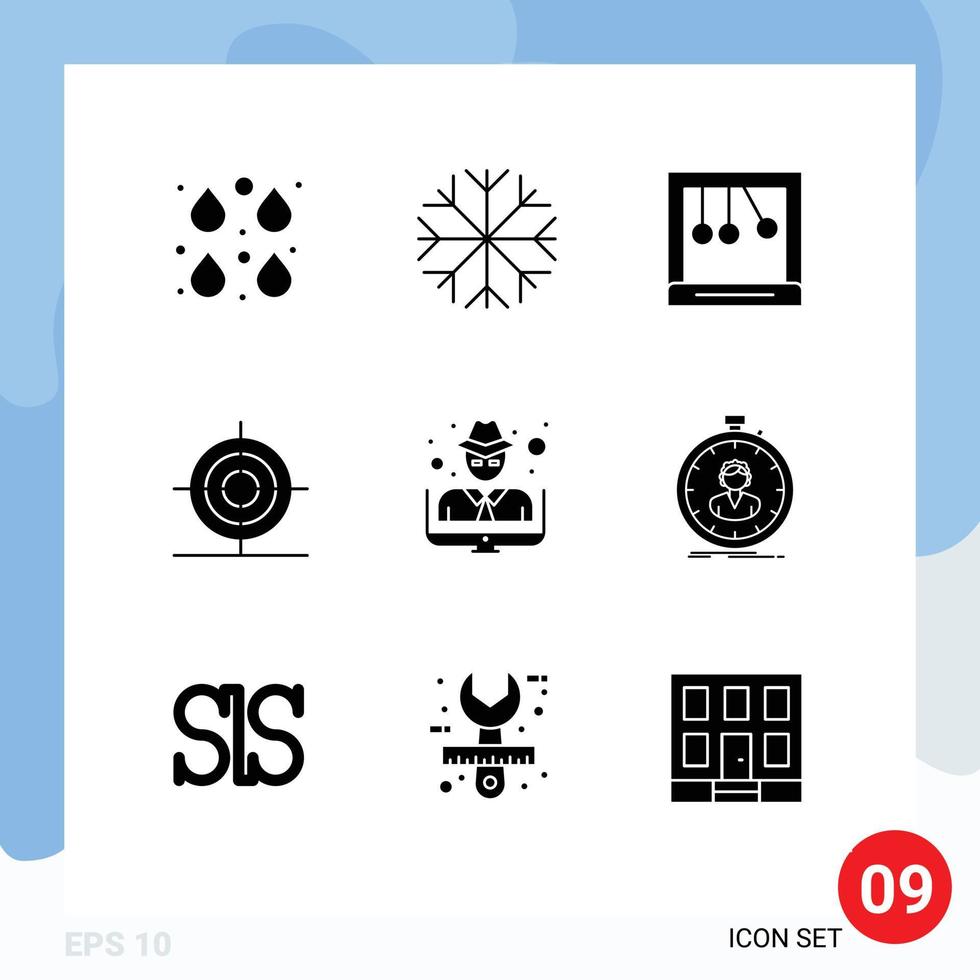 Mobile Interface Solid Glyph Set of 9 Pictograms of thief hacker calm shape education Editable Vector Design Elements Free Vector