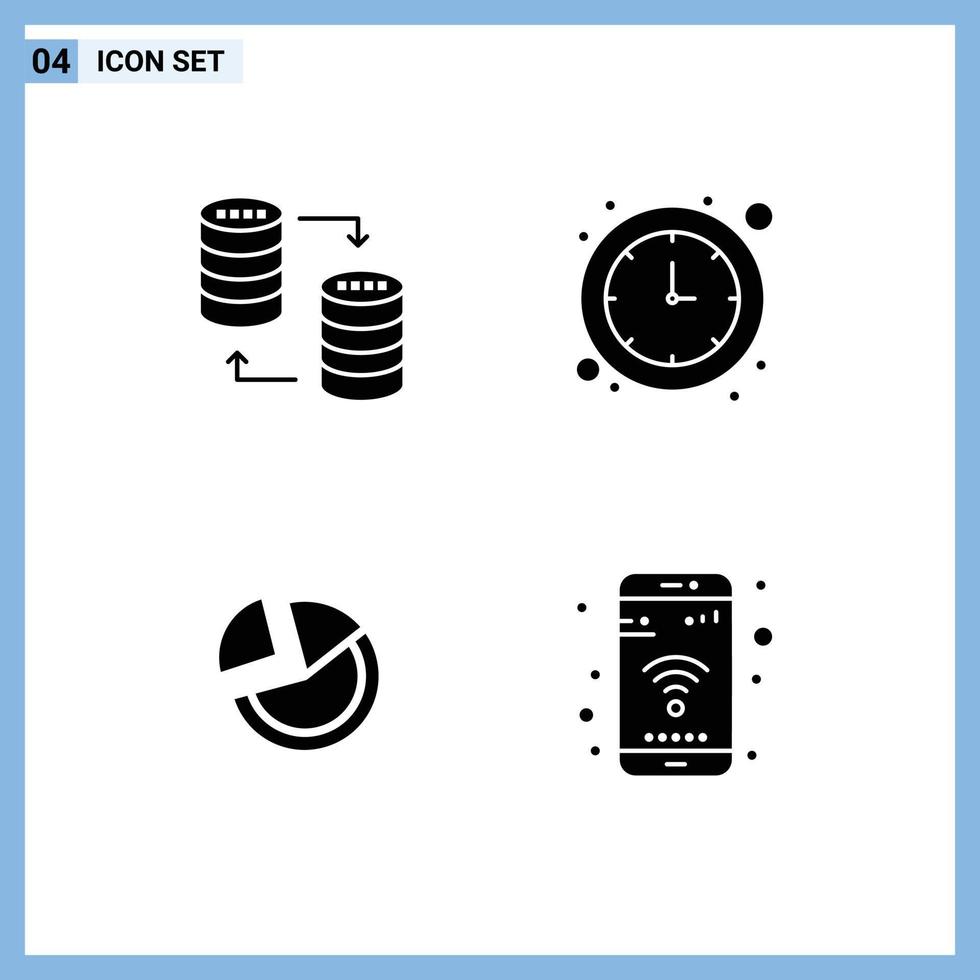 Editable Vector Line Pack of 4 Simple Solid Glyphs of database pie chart storage economy diagram Editable Vector Design Elements