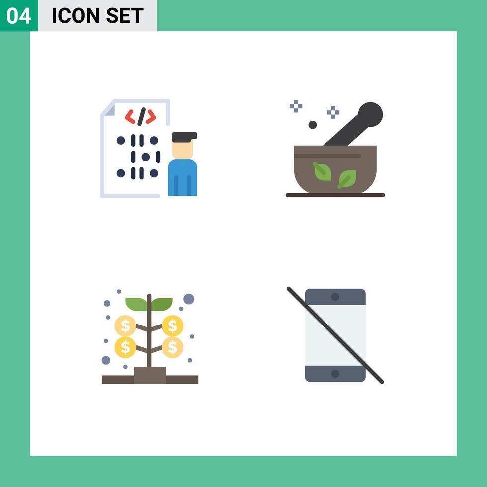 4 Universal Flat Icon Signs Symbols of coding fund programmer medical investment Editable Vector Design Elements Free Vector