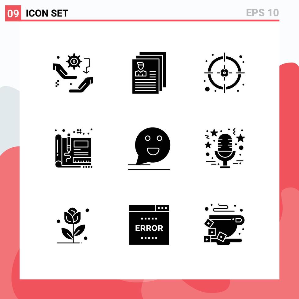 Editable Vector Line Pack of 9 Simple Solid Glyphs of design engineering files design target Editable Vector Design Elements Free Vector