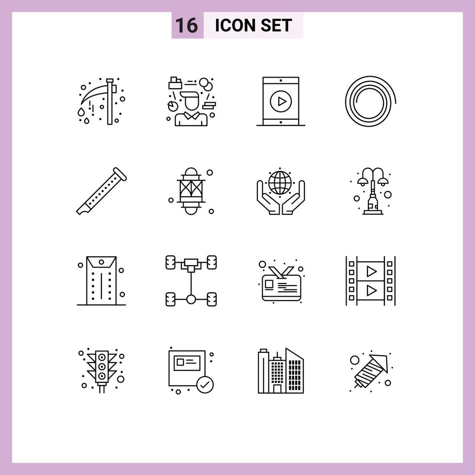 Editable Vector Line Pack of 16 Simple Outlines of audio shape consultant phone mobile Editable Vector Design Elements