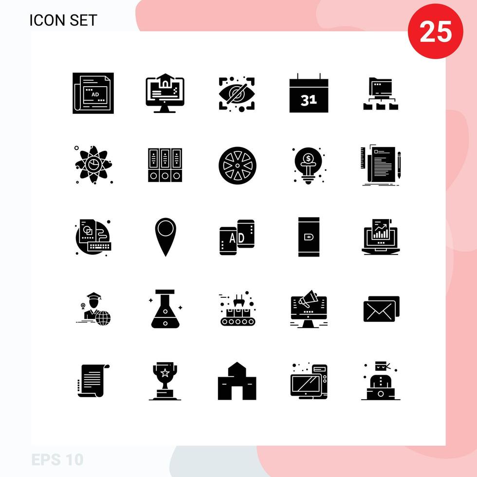 25 Universal Solid Glyphs Set for Web and Mobile Applications network folder block event calendar Editable Vector Design Elements