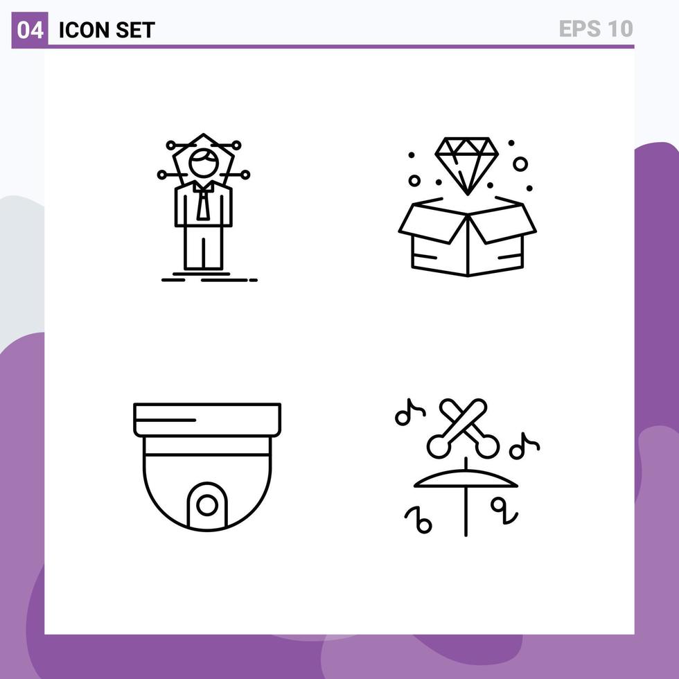 Mobile Interface Line Set of 4 Pictograms of business cam network gem security Editable Vector Design Elements Free Vector