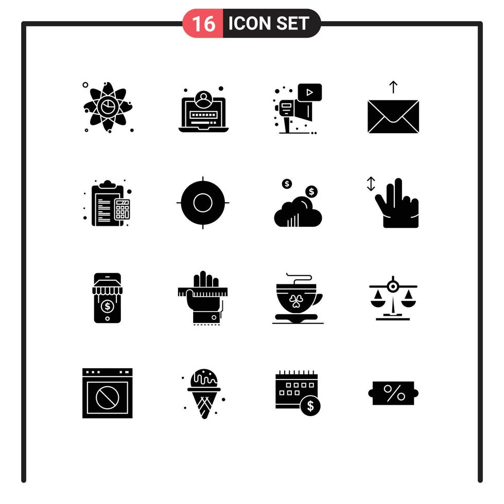Modern Set of 16 Solid Glyphs Pictograph of charge calculate advertising send mail Editable Vector Design Elements