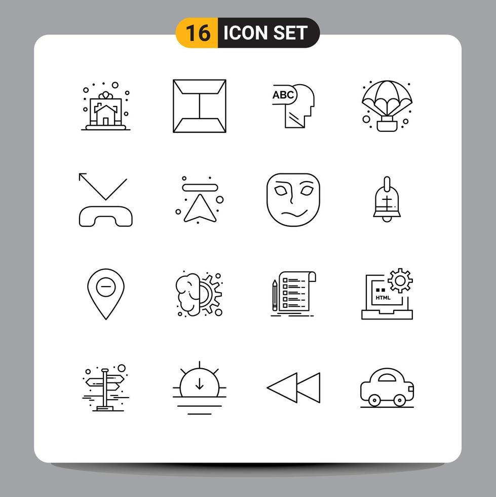 Group of 16 Outlines Signs and Symbols for arrows phone Layer missed observation Editable Vector Design Elements