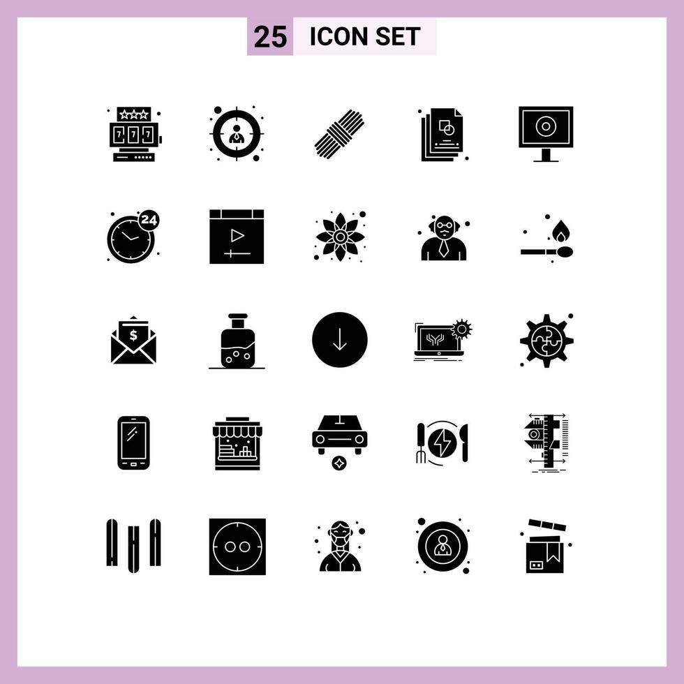 Mobile Interface Solid Glyph Set of 25 Pictograms of hours webcam set stream design Editable Vector Design Elements Free Vector