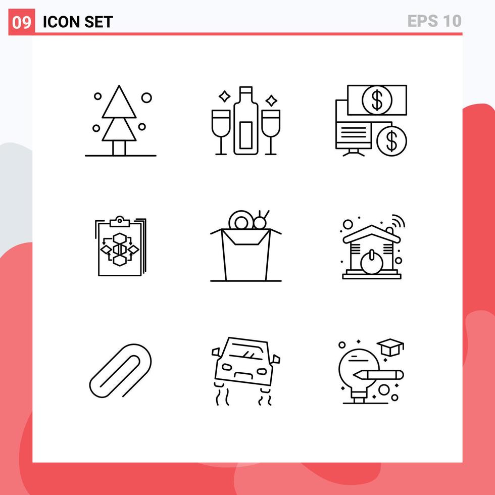 9 Outline concept for Websites Mobile and Apps work flow drinks diagram clipboard Editable Vector Design Elements