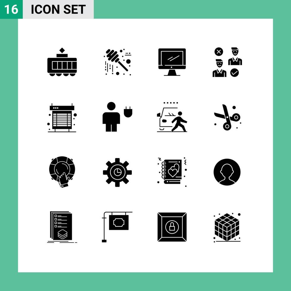 Pictogram Set of 16 Simple Solid Glyphs of computer good monitor job group Editable Vector Design Elements