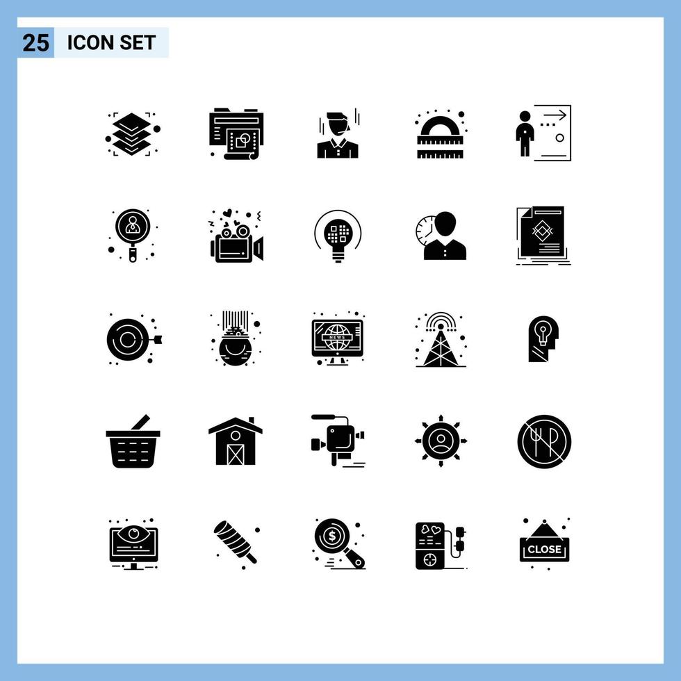 Editable Vector Line Pack of 25 Simple Solid Glyphs of employee study manager ruler geometry Editable Vector Design Elements