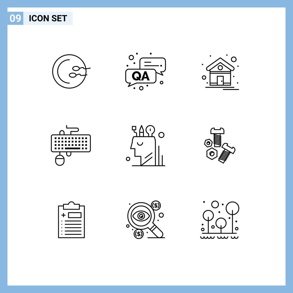Editable Vector Line Pack of 9 Simple Outlines of digital obsolete home mouse interface Editable Vector Design Elements