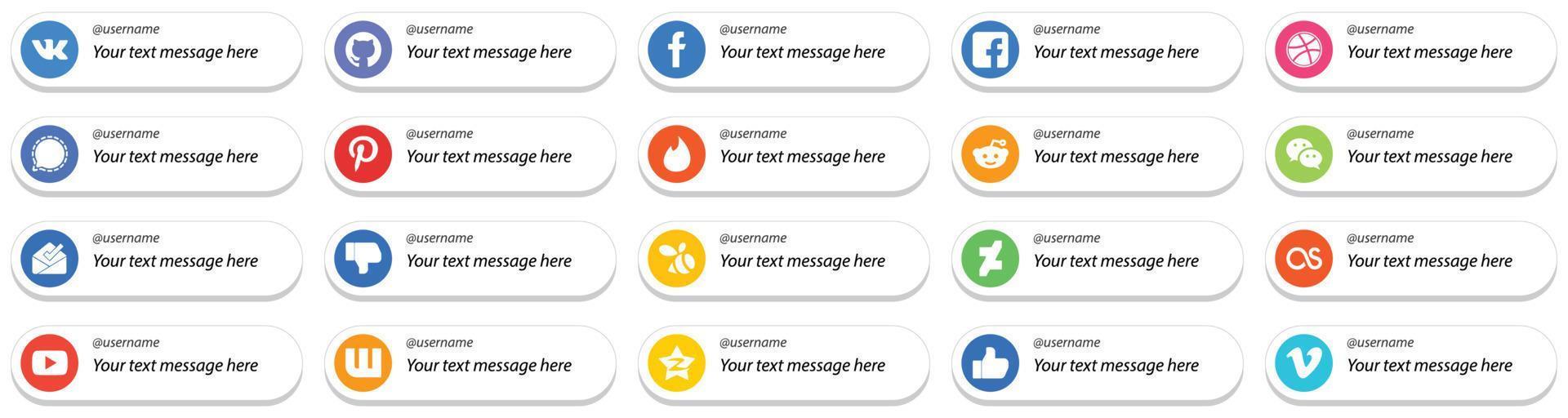 Follow Me Social Media Icons with Customizable Message 20 pack such as swarm. dislike. inbox and wechat icons. Minimalist and high resolution Free Vector