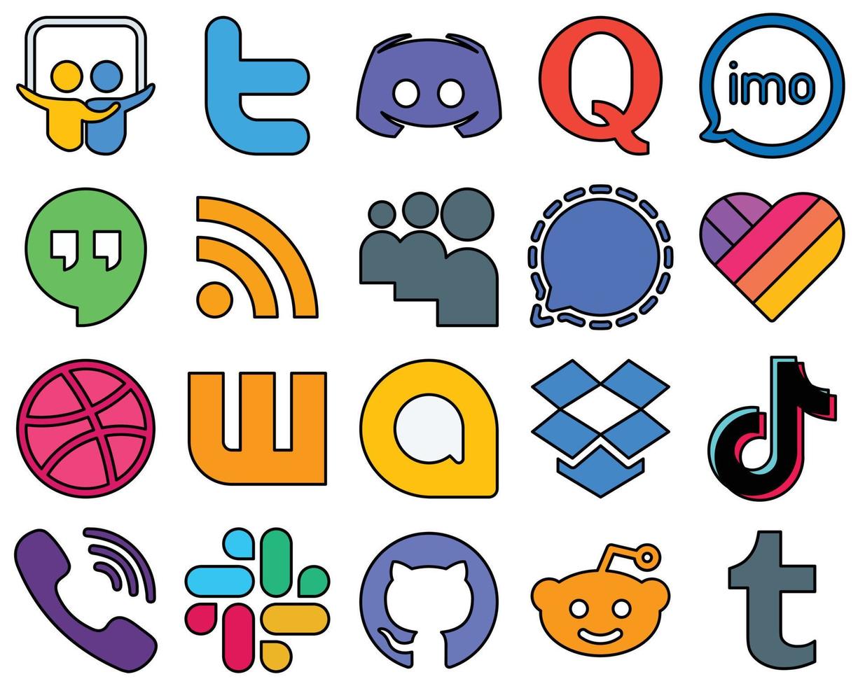 20 Unique Line Filled Social Media Icons such as signal. feed. question and rss Fully customizable and modern Free Vector