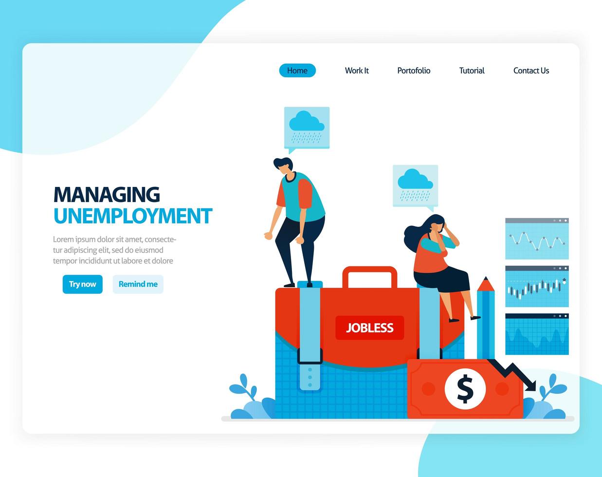 Vector illustration of managing unemployment. social security program for post-lay-off employees. Flat cartoon for landing page, template, ui ux, web, website, mobile app, banner, flyer, brochure Free Vector