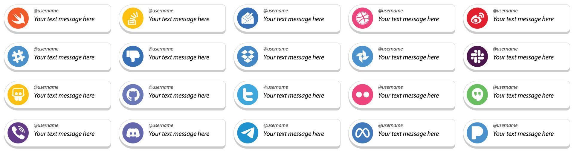 20 Customizable Social Media Follow Me Icons such as slideshare. google photo. sina. dropbox and dislike icons. Fully editable and versatile vector