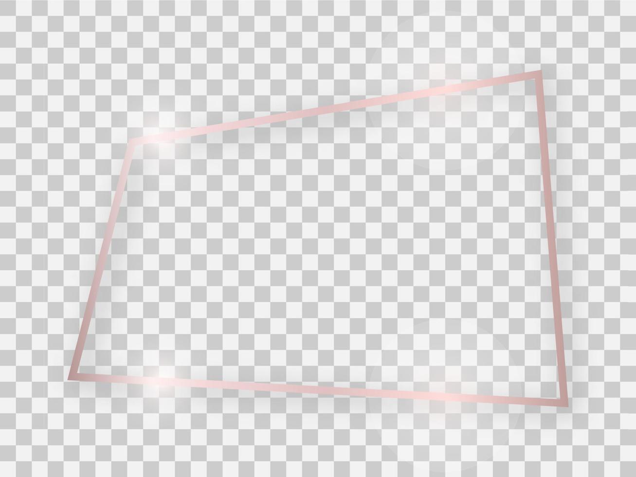 Rose gold shiny rectangular frame with glowing effects and shadows. Vector illustration Pro Vector