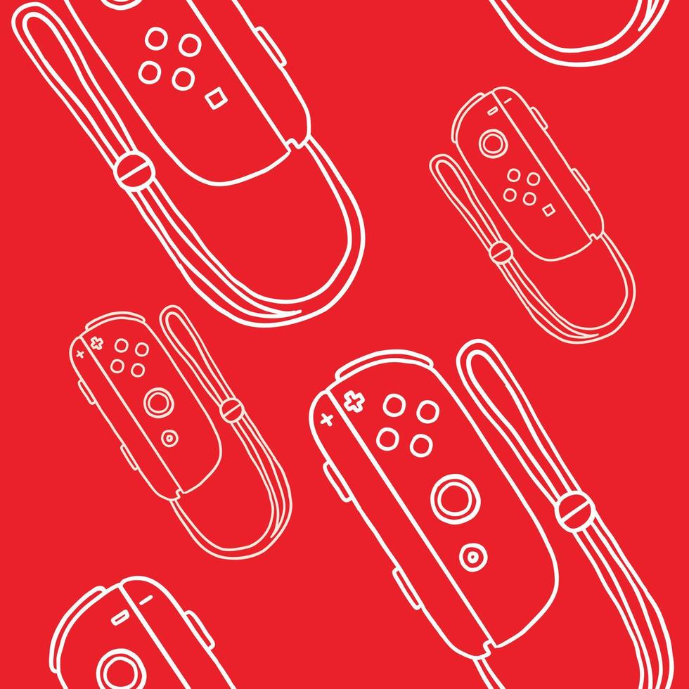 Seamless pattern of game controllers. Vector illustration in hand-drawn outline flat style on red background Pro Vector