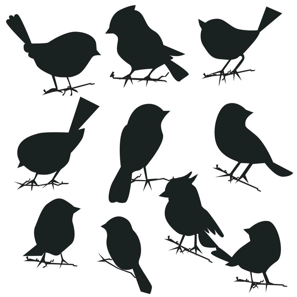 vector set of bird sillhouette in flat style various styles and shapes are perched on a branch, bird vector flat isolated on white background Pro Vector