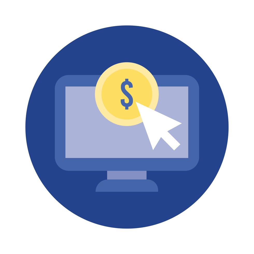 computer desktop with coin and arrow block and flat style icon Free Vector