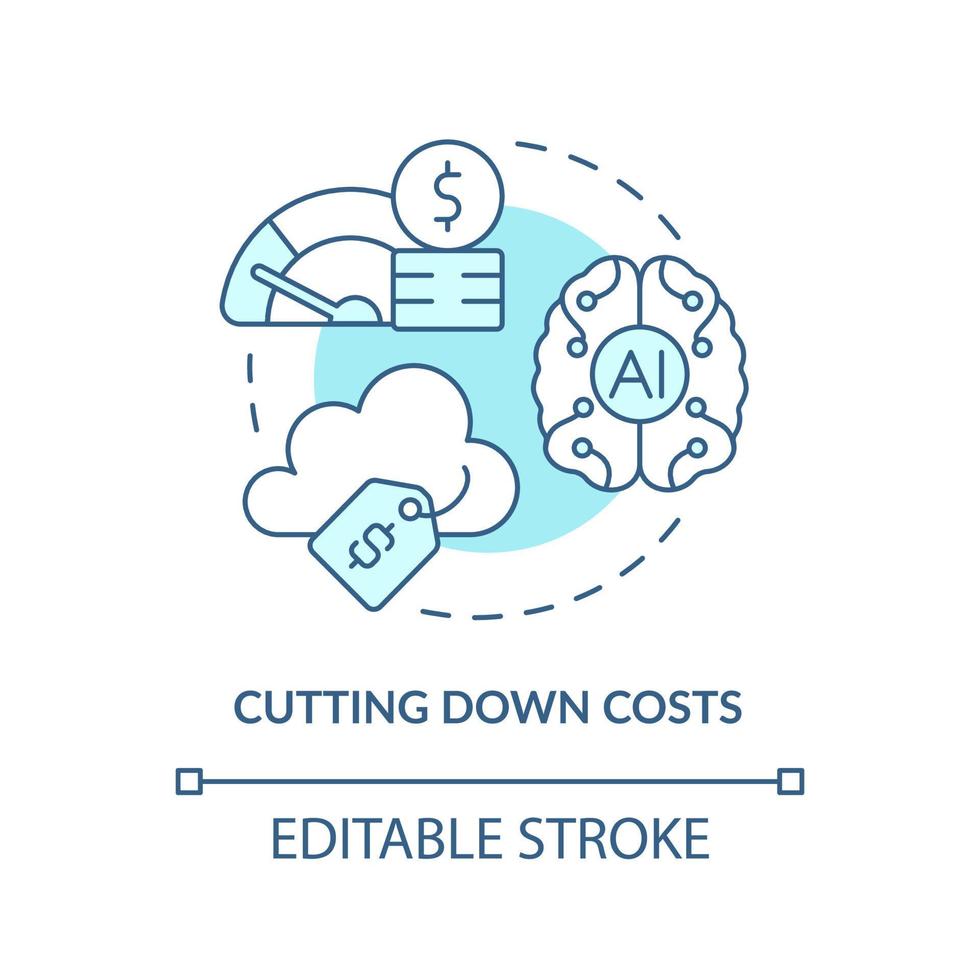Cutting down costs turquoise concept icon. AI in cloud computing pros abstract idea thin line illustration. Isolated outline drawing. Editable stroke. Arial, Myriad Pro-Bold fonts used Pro Vector
