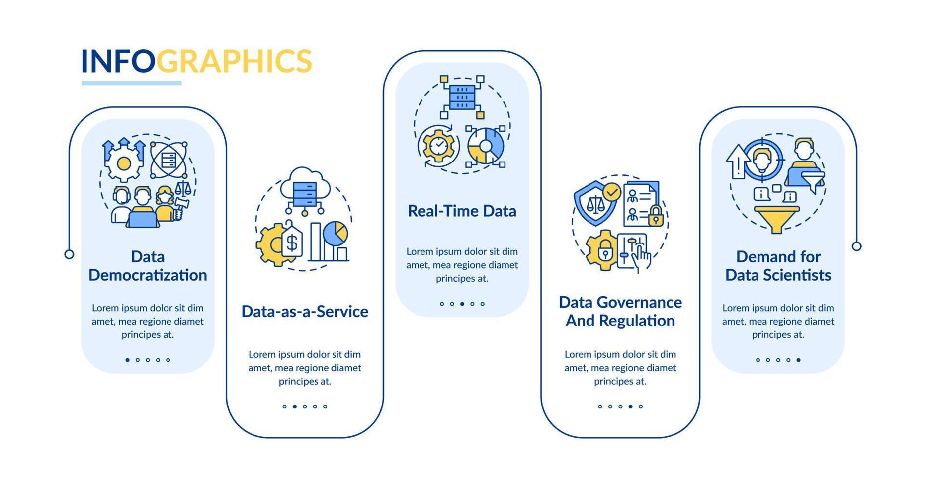 Data science trends rectangle infographic template. Development. Data visualization with 5 steps. Editable timeline info chart. Workflow layout with line icons. Lato-Bold, Regular fonts used Pro Vector