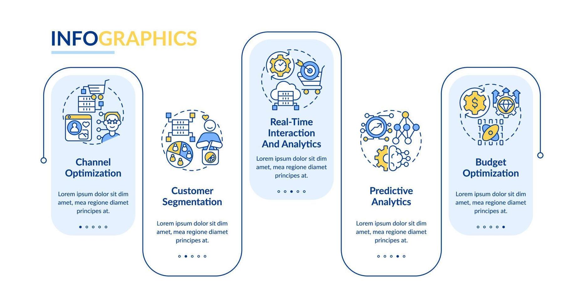 Data science in marketing rectangle infographic template. Business. Data visualization with 5 steps. Editable timeline info chart. Workflow layout with line icons. Lato-Bold, Regular fonts used Pro Vector