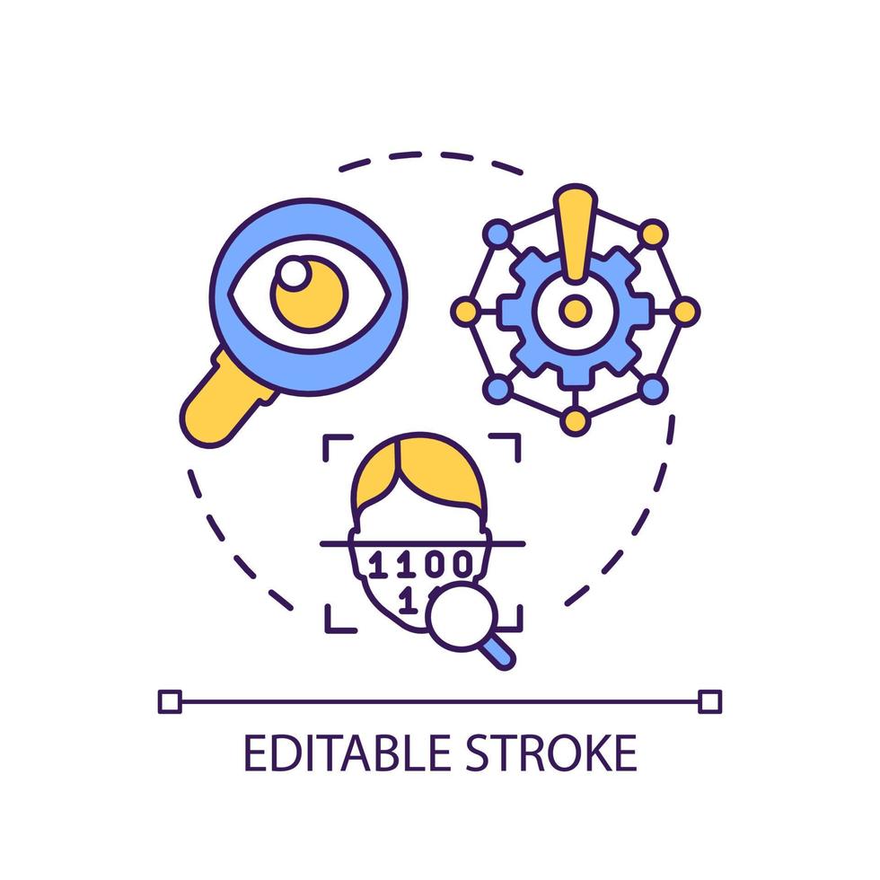 Surveillance concept icon. Face recognition technology. Monitoring system. Computer network issue abstract idea thin line illustration. Isolated outline drawing. Editable stroke. Arial font used Pro Vector