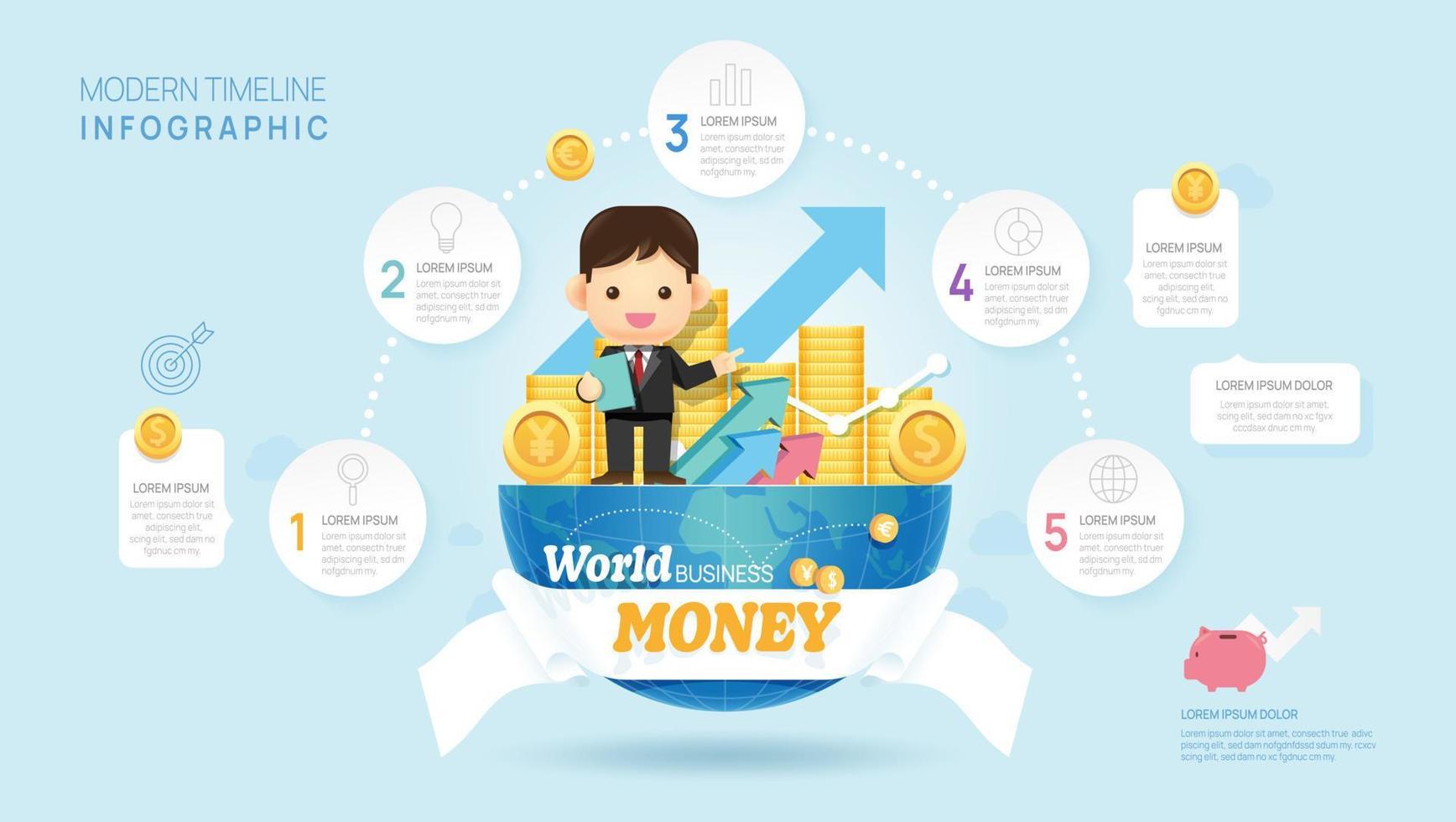 Infographic Timeline diagram template for business. 5 Steps Modern roadmap with circle topics, for vector infographics, flow charts, presentations. Pro Vector