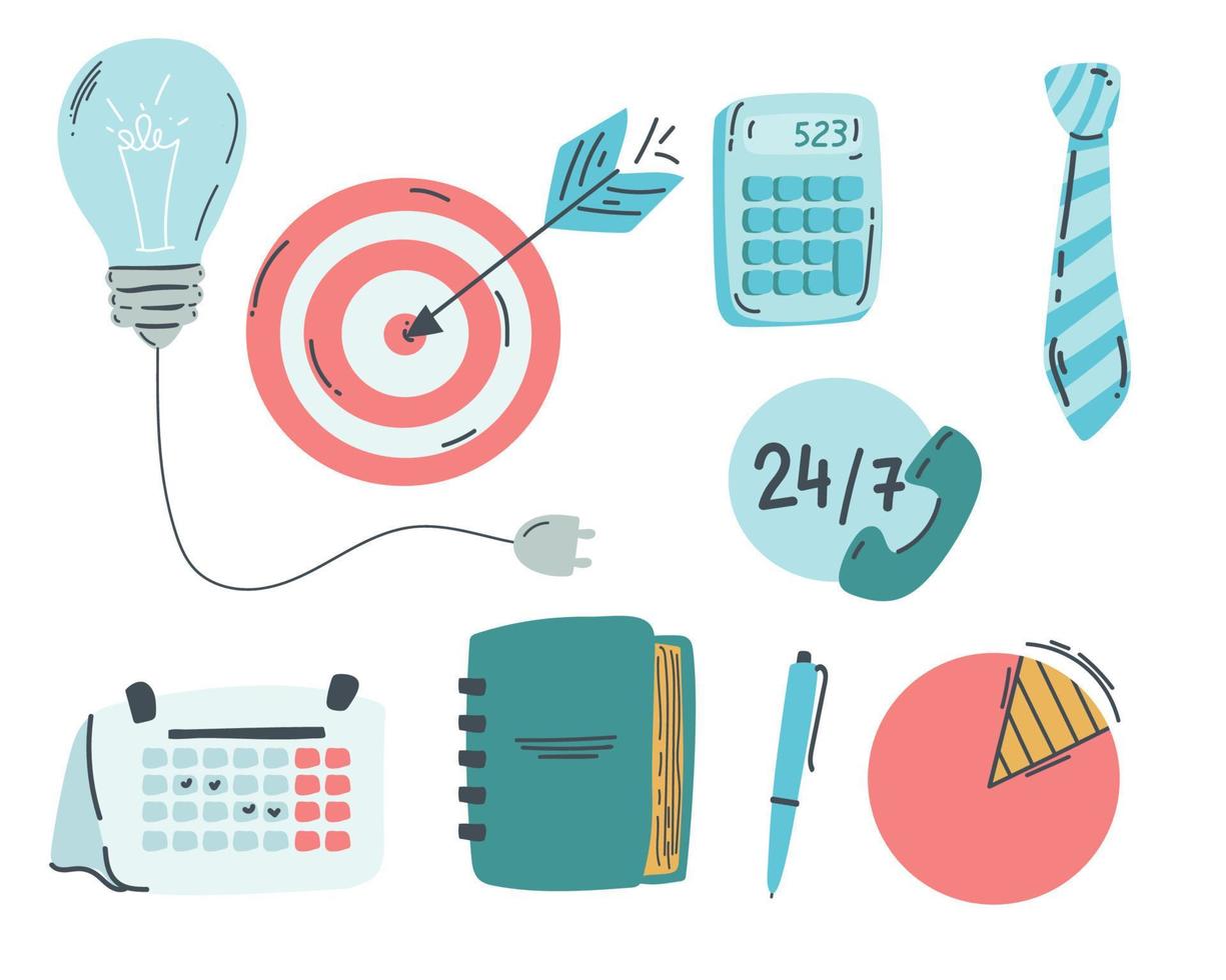 Set of business doodle elements made in vector. Idea, businessman, creative thinking, progress, graphs and all other kinds of business related elements Pro Vector