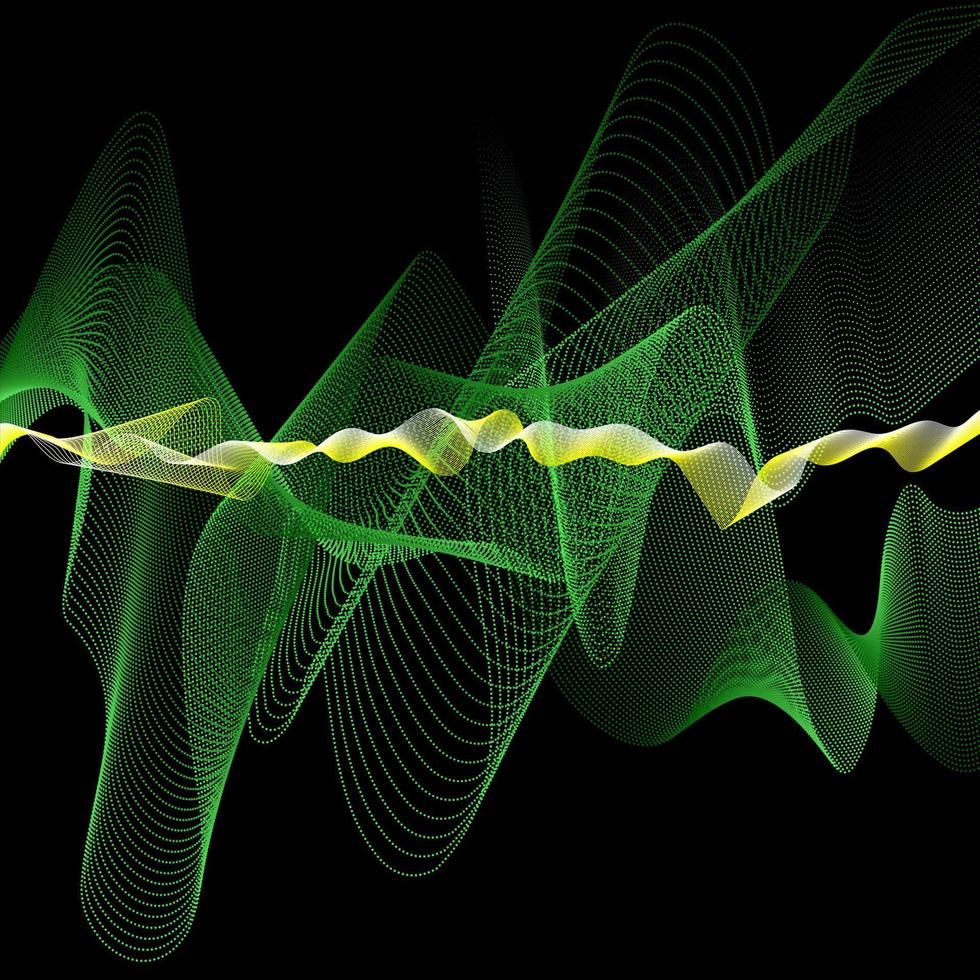 Wave of dots and lines. Abstract background of green sound waves. Structure of network connections. Pro Vector