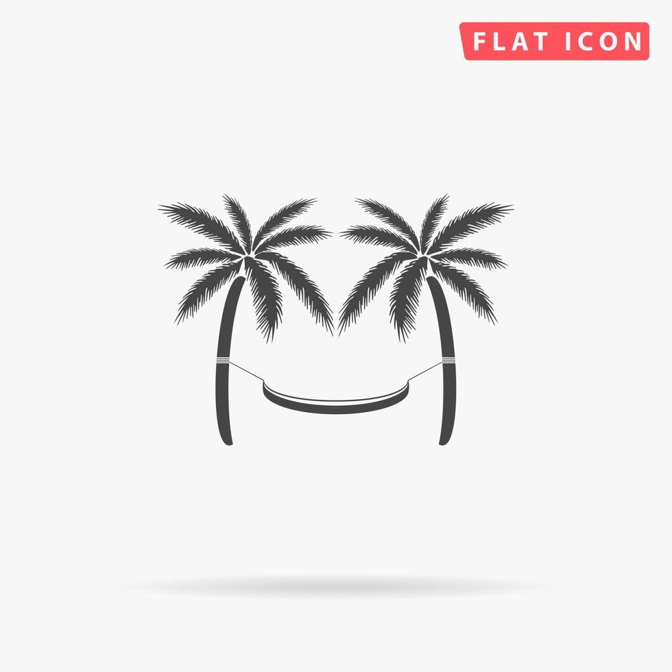 Hammock and palm trees. Simple flat black symbol with shadow on white background. Vector illustration pictogram Pro Vector